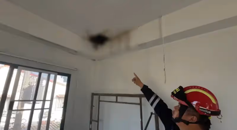 据现场工人陈述,案发当日为其新年假期后首日上工,原计划进行天花板施工作业。此前多日,工人已持续闻到强烈腐臭,但误以为是动物尸体所致,未予深究。直至使用PVC管探查天花板破洞时,意外触及异物,拨动后竟勾出人类头骨,工人惊恐之下立即向屋主报告并报警。