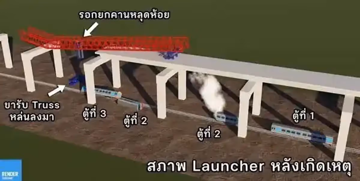 脸书页面“RenderThailand”发布了事故情景模拟图,尝试从工程角度还原经过。