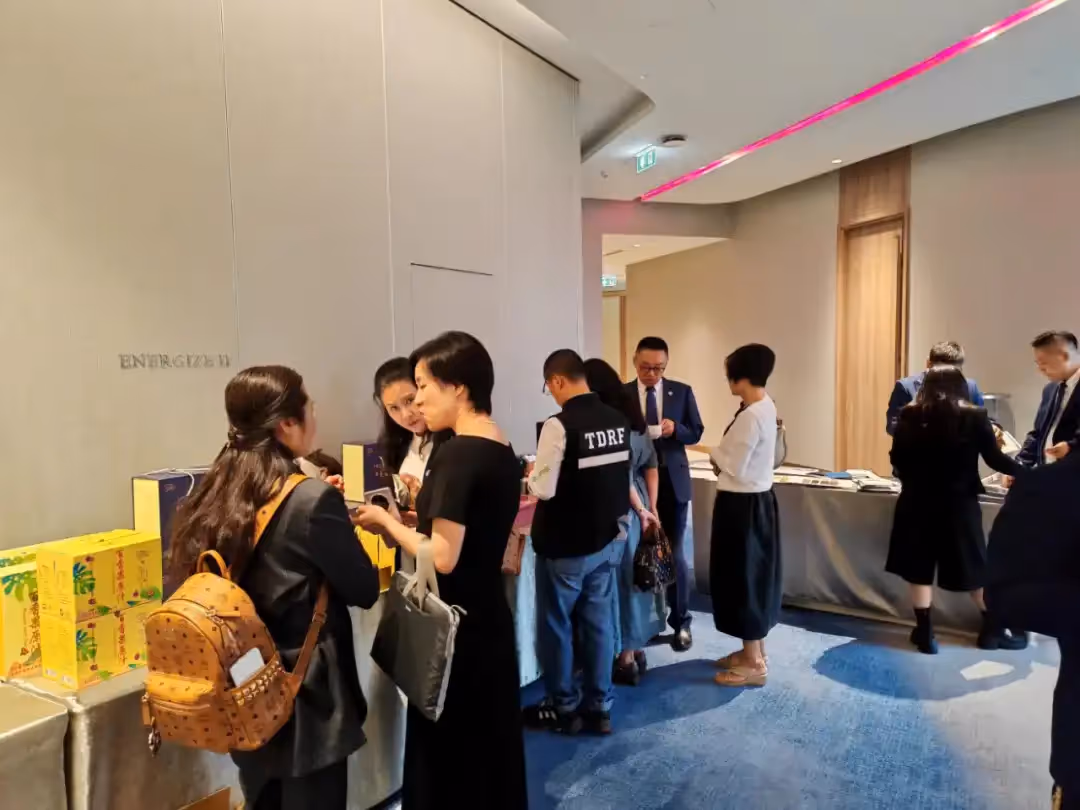5月15日下午,由贵州省民营经济国际合作商会、泰国贵州商会主办,贵州乾熵国际贸易有限公司、泰鼎东盟文化有限公司承办的贵州产品泰国推介会在泰国曼谷举行。旨在促进贵州与泰国之间的经贸交流与合作,推动贵州特色产品走向国际市场。贵州经贸考察团成员、泰国贵州商会及泰国当地企业家参加推介会。