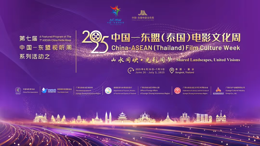 2025年是中国—东盟人文交流年,也是中泰建交50周年暨“ 中泰友谊金色50年”。中国电影家协会、泰国媒体发展基金会、中国广西壮族自治区电影局、泰国旅游与体育部旅游厅、中国广西壮族自治区外事办公室、中国广西壮族自治区文学艺术界联合会、中国广西文化产业集团有限公司等中泰两国单位共同主办电影文化周,以“山水同映·光影同梦”为主题,旨在以光影为媒,共同谱写“和平、安宁、繁荣、美丽、友好”五大家园建设的新乐章