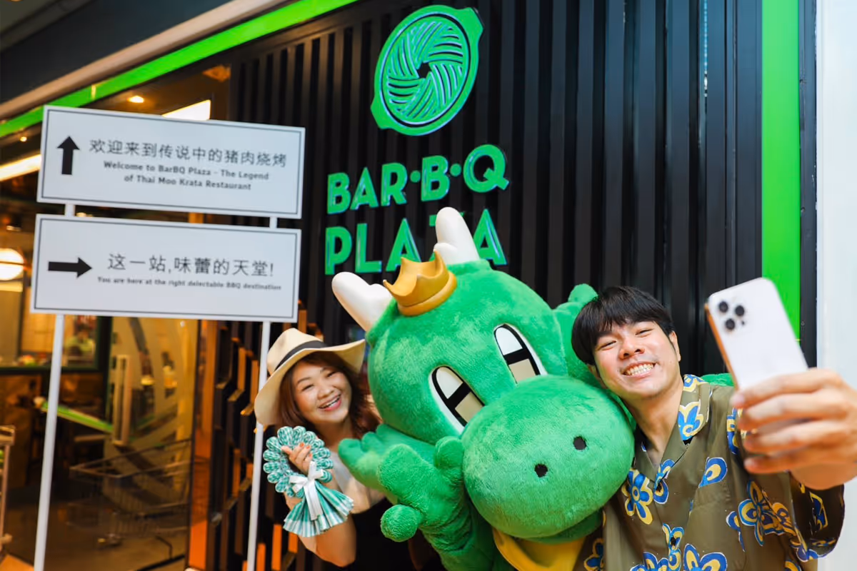 BAR.B.Q PLAZA是泰式传统烤肉店品牌,经营超35年。其菜品、蘸酱、金色锅及在中泰均有着很好寓意的绿色吉祥物都独具特色。所提供的中文友好服务,不仅可以扩大中外顾客数量,通过别样的烤肉美食助力泰国旅游业发展,已成为一股文化软实力,推动泰式烤肉成为外国游客必尝的美食之一。