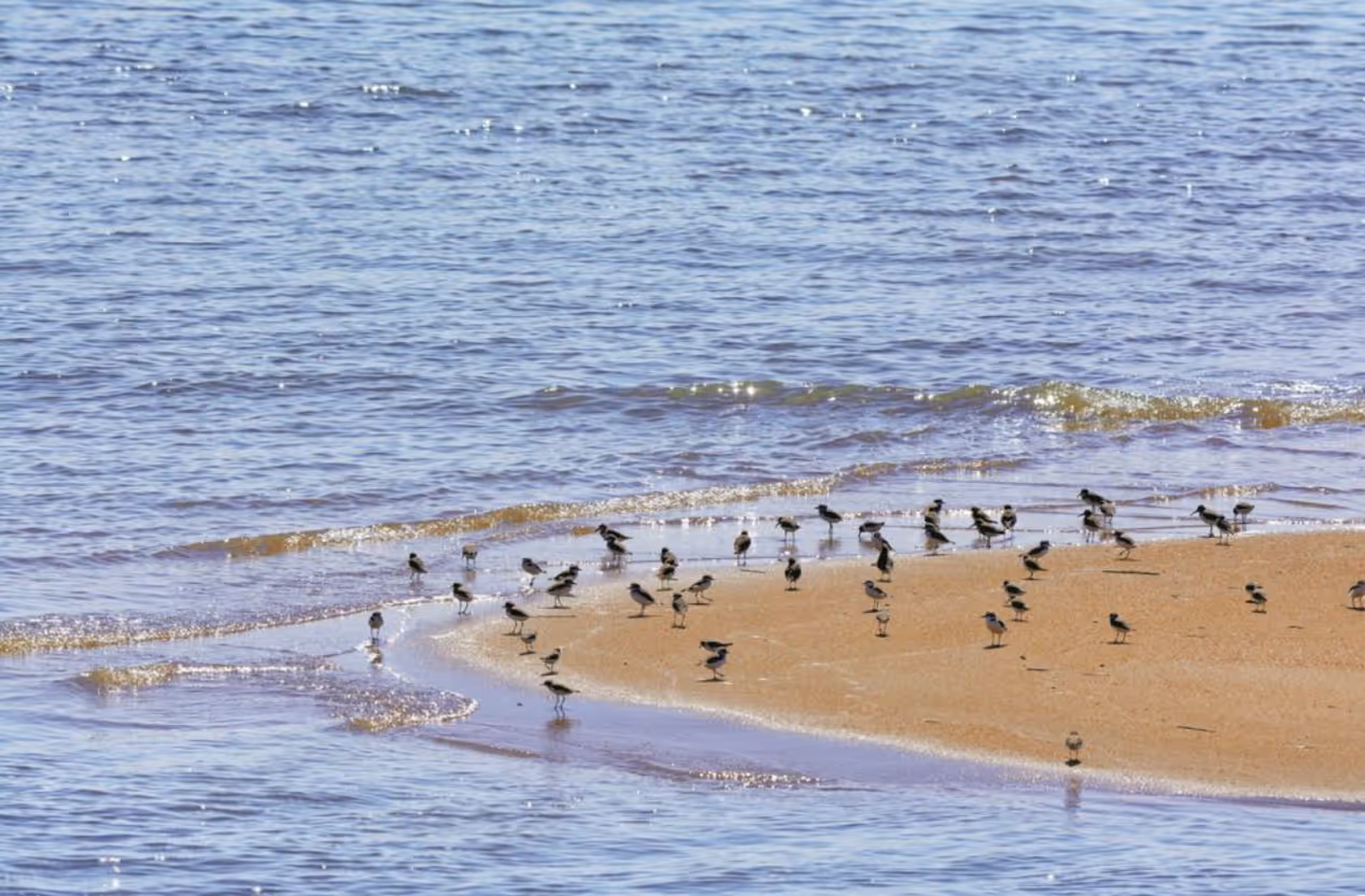 三娘湾位于著名的东亚—澳大利亚迁徙路线上,是鸟类重要的中途停歇地。近年则在持续维稳的生态环境治理下,孕育了丰富的栖地生境,逐渐成为一些鸟儿的越冬地。每年,来到这里的鸟类有大滨鹬、白腰杓鹬、中杓鹬、翻石鹬、阔嘴鹬、鸥嘴噪鸥、大凤头燕鸥等 32 种以上,其中不乏国家二级保护动物,也有的已被列为濒危动物。这让以观鸟为第一大乐趣的人难掩喜悦,趁着跃跃欲试的兴奋劲儿,用专业的“长枪短炮”为候鸟们留下了许多珍贵的影像,这也是人们选择与鸟为友的见证。