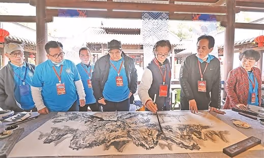 6、书画家们现场挥毫泼墨,广西的大好河山跃然纸上。
