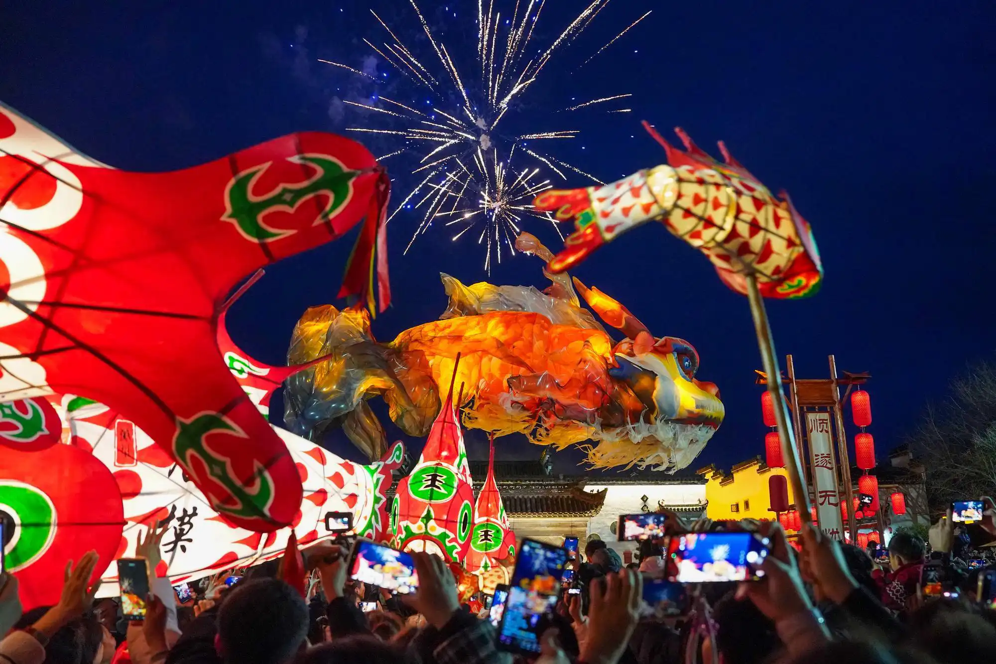 โคมไฟ ‘ปลาอ๋าว’ ใหญ่ยักษ์ ส่องแสงเด่นกลางขบวนแห่ในอันฮุย