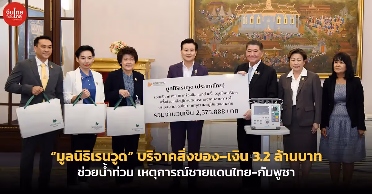 มูลนิธิเรนวูด (ประเทศไทย) ตอกย้ำพันธกิจด้านความรับผิดชอบต่อสังคม ด้วยการส่งมอบเงินบริจาค อุปกรณ์ทางการแพทย์ และเครื่องอุปโภคบริโภค มูลค่ารวมกว่า 3,200,000 บาท เพื่อช่วยเหลือทหารและประชาชน ที่ได้รับผลกระทบจากสถานการณ์ตามแนวชายแดนไทย–กัมพูชา รวมถึงผู้ปฏิบัติหน้าที่ในพื้นที่เสี่ยงภัย ประชาชนผู้ประสบอุทกภัยพื้นที่ภาคเหนือ ในจังหวัดแพร่และน่าน โดยมีนางสาววรพนิต รวยรุ่งเรือง รองประธานกรรมการ มูลนิธิเรนวูด (ประเทศไทย) เป็นผู้แทนส่งมอบ และได้รับเกียรติจากนายภูมิธรรม เวชยชัย รองนายกรัฐมนตรี รักษาราชการแทนนายกรัฐมนตรี เป็นผู้แทนรับมอบ โดยเงินบริจาคทั้งหมดจะถูกส่งต่อเข้าสู่ กองทุนเงินช่วยเหลือผู้ประสบสาธารณภัย สำนักนายกรัฐมนตรี เพื่อบรรเทาความเดือดร้อนของประชาชน และสนับสนุนภารกิจของเจ้าหน้าที่ในพื้นที่ชายแดน