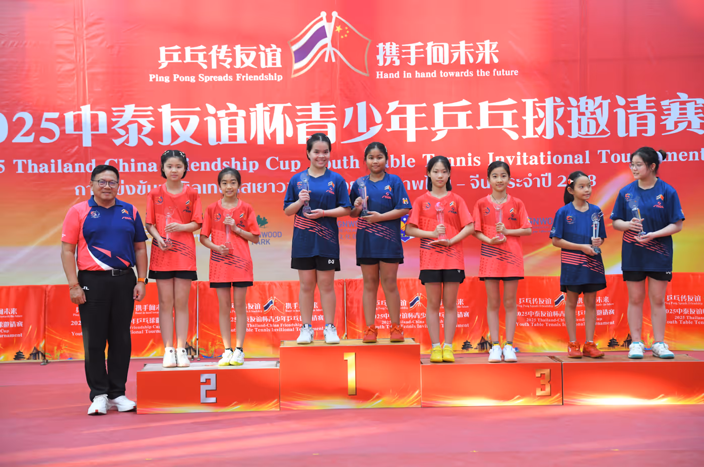 เมื่อจบการแข่งขัน ทีมเยาวชนไทยคว้าแชมป์รวมไปครองท่ามกลางเสียงปรบมือของผู้ชม โดยมี คุณณัฐวุฒิ เรืองเวส นายกสมาคมกีฬาเทเบิลเทนนิสแห่งประเทศไทยและ คุณจาง เวย (Zhang Wei) ตัวแทนมูลนิธิวัฒนธรรมเรนวูด ปักกิ่งเป็นผู้มอบรางวัลให้แก่นักกีฬาทั้งสองประเทศ