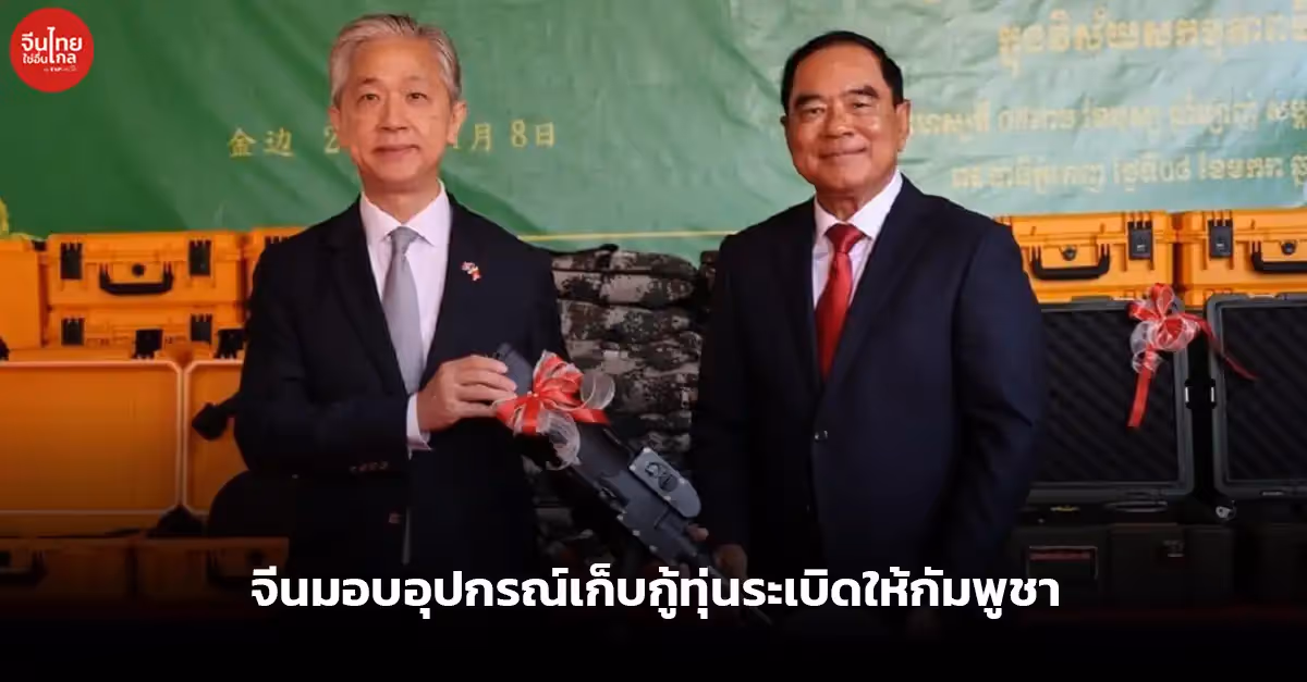เมื่อวันที่ 8 ม.ค. 69 พิธีส่งมอบอุปกรณ์เก็บกู้ทุ่นระเบิดจากรัฐบาลจีนแก่กัมพูชา จัดขึ้นที่กรุงพนมเปญ โดยมีนายลี ทุช รองประธานอาวุโสขององค์การช่วยเหลือผู้ประสบภัยจากทุ่นระเบิดและภัยพิบัติแห่งกัมพูชา (CMAA) และนายหวัง เหวินปิน เอกอัครราชทูตจีนประจำกัมพูชาเข้าร่วมพิธี