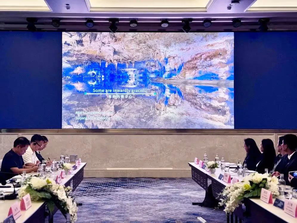 งานประชุมเริ่มด้วยการฉายวิดีโอประชาสัมพันธ์มณฑลกุ้ยโจวพาผู้เข้าร่วมงาน “ท่องกุ้ยโจวแบบเสมือนจริง” ชมทิวทัศน์ภูเขา ป่าไม้ และทะเลสาบอันงดงามพร้อมแนะนำอุตสาหกรรมเด่นและความสำเร็จทางเศรษฐกิจของมณฑลกุ้ยโจวอย่างรอบด้านทำให้ผู้เข้าร่วมงานรู้จักและเข้าใจมณฑลกุ้ยโจวมากยิ่งขึ้น