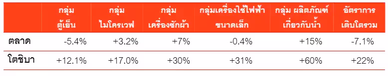อัตราการเติบโตของตลาด เทียบกับ โตชิบา แยกตามประเภทกลุ่มสินค้า (มูลค่า)