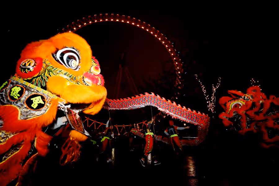 ลอนดอนอายสว่างไสว! เปิดไฟแดงฉลองตรุษจีน พร้อมโชว์เชิดมังกรสุดตระการตา