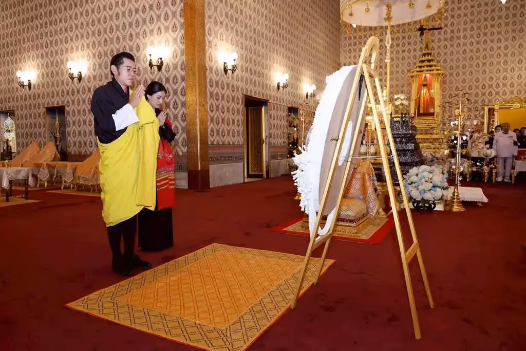 29 ต.ค.2568 เวลา10.00 น. สมเด็จพระราชาธิบดี จิกมี เคเซอร์ นัมเกล วังชุก แห่งราชอาณาจักรภูฏานเสด็จพระราชดำเนินพร้อมด้วย สมเด็จพระราชินีเจตซุน เพมา วังชุก มาทรงวางพวงมาลาถวายราชสักการะหน้าพระโกศพระบรมศพ สมเด็จพระนางเจ้าสิริกิติ์พระบรมราชินีนาถ พระบรมราชชนนีพันปีหลวง ณ พระที่นั่งดุสิตมหาปราสาทพระบรมมหาราชวัง พร้อมทั้งทรงลงพระปรมาภิไธย และพระนามาภิไธย ถวายความอาลัย