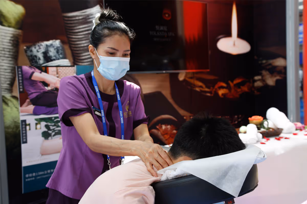 สำหรับหอนิทรรศการที่ได้รับความนิยมมากที่สุดทุกปี คือ หอจัดแสดงของประเทศในอาเซียน โดยหนึ่งในนั้น พาวิลเลียนของประเทศไทยก็ยังคงได้รับความนิยมอย่างมากในหมู่ผู้คน - การนวดแผนไทย หรือที่คนจีนเรียกว่า “หม่าซาจี” (马杀鸡) ) ซึ่งทำให้ผู้มาเยี่ยมชมอยากลอง อยากสัมผัสการนวดแผนไทย เจี่ยง ลี่อวี๋ ผู้บริหารของบริษัทที่ดำเนินธุรกิจร้านนวดแผนไทยในกว่างซี ได้เข้าร่วมงาน CAEXPO เป็นเวลาห้าปีติดต่อกัน "บูธของเราเต็มไปด้วยฝูงชนรายล้อม ทุกคนล้วนเข้ามาสัมผัสประสบการณ์ หมอนวดแผนไทยของเราต้องรับมือแทบไม่หวาดไม่ไหว” โครงการที่เปิดให้สัมผัสประสบการณ์แบบอาเซียนนี้ ไม่เพียงช่วยให้ผู้เยี่ยมชมได้สัมผัสกับนวดไทยที่เป็นตำนานสไตล์ไทยด้วยตนเองแล้ว ยังสามารถใช้ส่งเสริมการพัฒนาภาคการท่องเที่ยวในประเทศไทยได้ด้วย