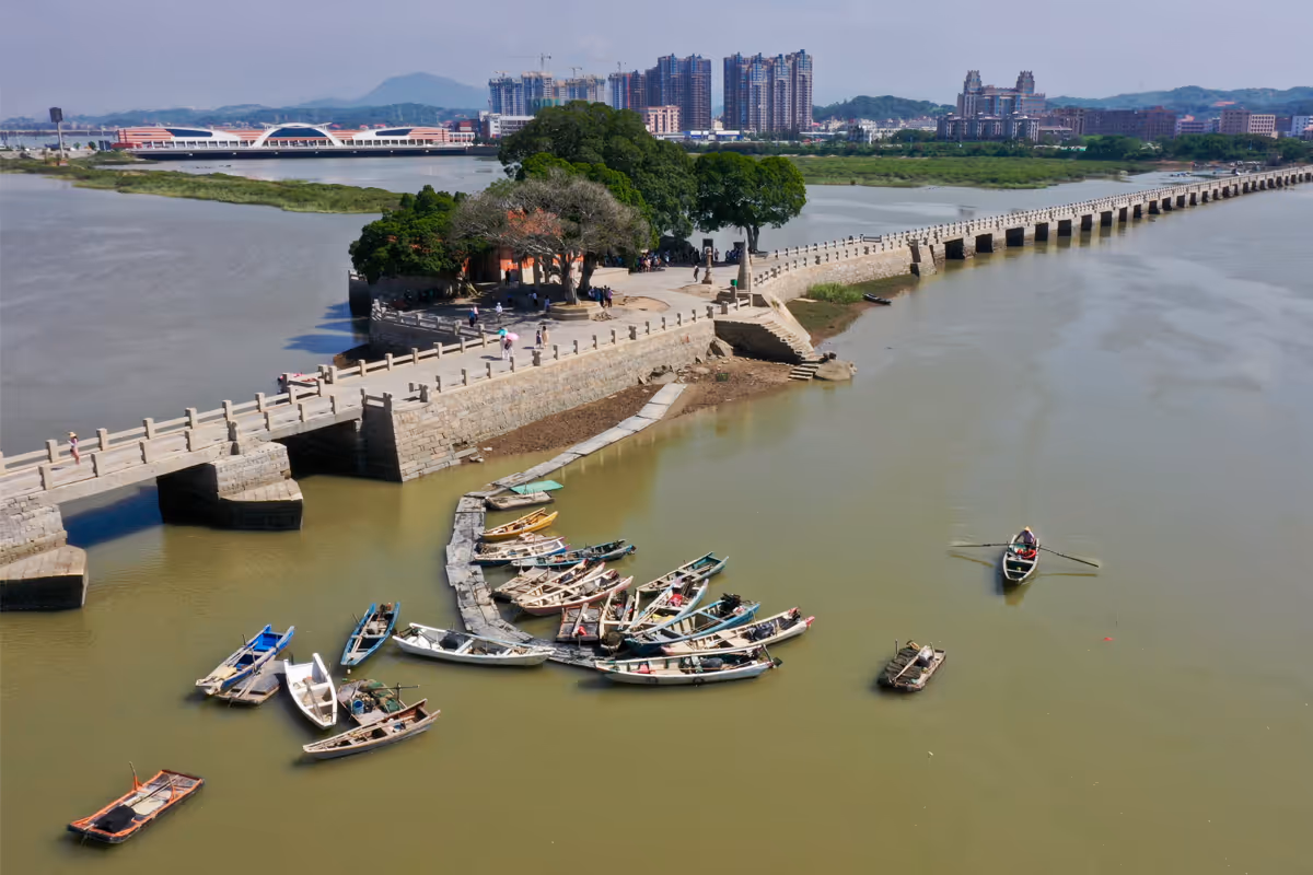 ‘สะพานลั่วหยาง’หรือ ‘สะพานว่านอัน’ เป็นสะพานหินข้ามทะเลที่เก่าแก่ที่สุดที่ยังหลงเหลืออยู่ในประเทศจีนมีอายุกว่า 1,000 ปี ถือเป็นหนึ่งในสี่สะพานโบราณเลื่องชื่อของจีน(อีก 3 สะพานที่เหลือคือ สะพานหลูโกวที่ปักกิ่ง สะพานจ้าวโจวที่เหอเป่ยและสะพานกว่างจี้ที่กวางตุ้ง) ทางทิศใต้ของสะพานมี ‘บันทึกสะพานว่านอัน’ แผ่นศิลาจารึกที่เขียนโดยไช่เซียงปราชญ์ด้านผู้เชี่ยวชาญด้านการเขียนอักษรในสมัยราชวงศ์ซ่ง สะท้อนให้เห็นถึงเทคนิคงานด้านสถาปัตยกรรมการสร้างสะพานศิลปะการเขียนอักษร และการสลักแผ่นศิลาจารึกในสมัยโบราณ