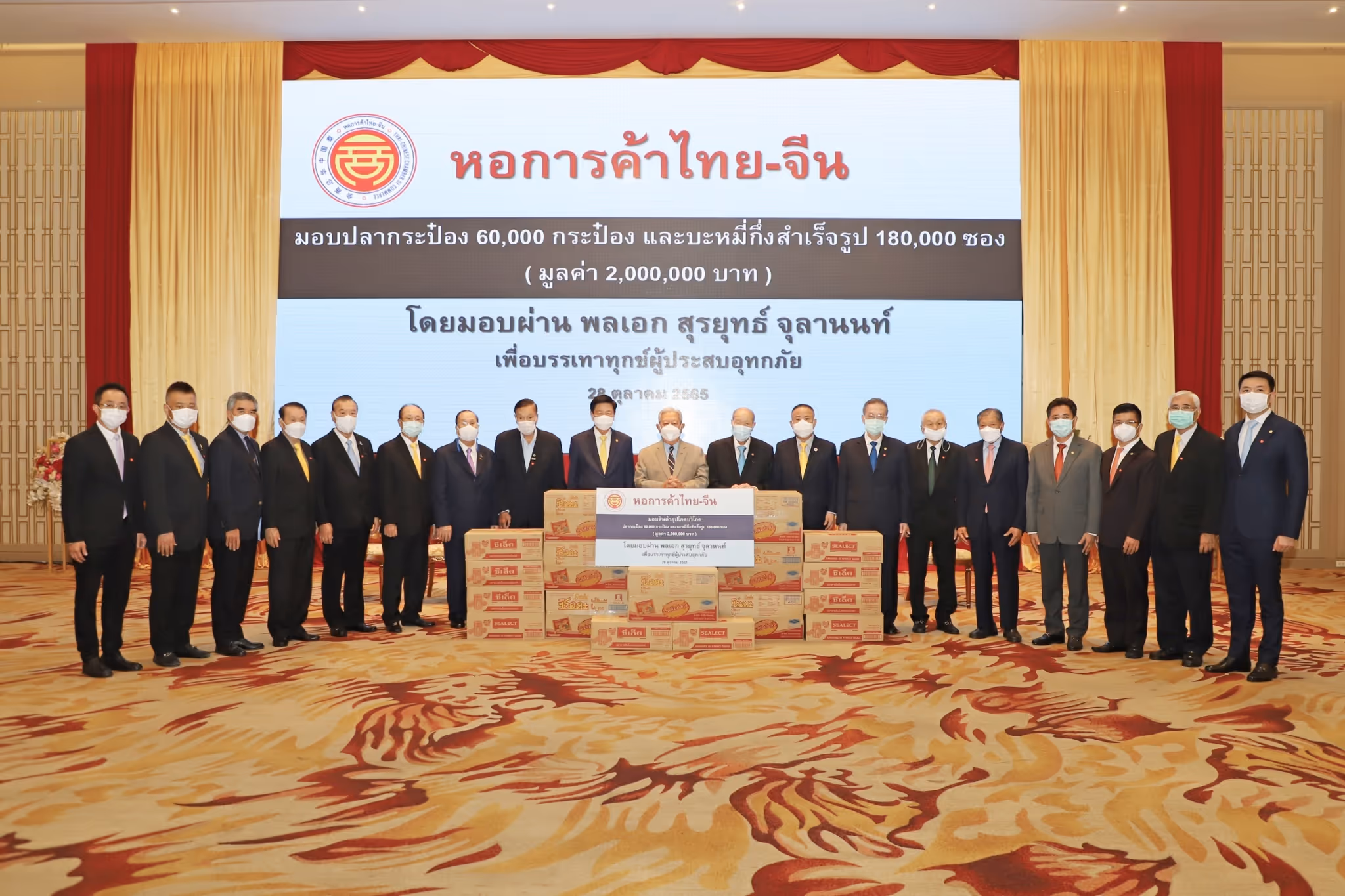 หอการค้าไทย-จีน มอบสินค้าอุปโภคบริโภค ผ่านประธานองคมนตรี เพื่อสนับสนุนการปฏิบัติงานบรรเทาทุกข์แก่ผู้ประสบอุทกภัยภัย